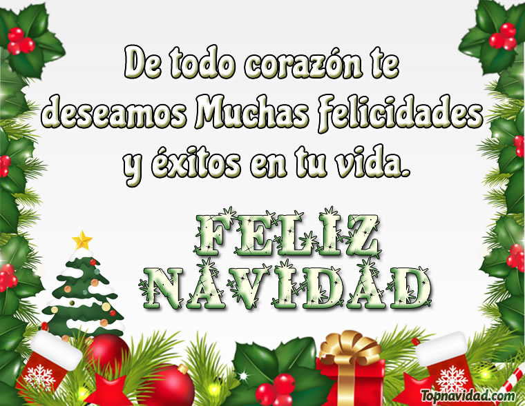 Te deseo una muy feliz navidad. In this christmas i hope all your dreams come true. Deseo que la magia de la navidad te ilumine para que puedas conseguir tus deseos. Espero que, aunque haga frío, en estas navidades siempre tengas cerca a alguien que te dé calor. Quiero compartir contigo mis mejores deseos navideños de amor, paz y amistad.