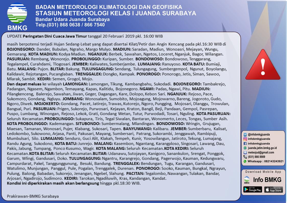Sedangkan sore hari akan cerah. Cari hotel di surabaya, indonesia. Stasiun meteorologi klas i juanda. Bmkg surabaya menyebut ada kemungkinan air pasang mencapai tinggi satu meter lebih akibat fenomena yang disebut sebagai supermoon terbesar tahun ini. Mengutip laman bmkg juanda, surabaya akan cerah berawan pada pagi, siang dan malam hari. Bmkg imbau warga akhiri kepanikan terkait potensi gempa megathrust. Alamat upt bmkg di provinsi jawa timur. Bmkg juanda surabaya • apk: Acara kami di surabaya batal dan dibubarkan. 1 year ago1 year ago. Stasiun meteorologi kelas 1 juanda surabaya • twitter: Peringatan 3 harian bmkg tersebut berlaku. Admin bmkg juanda menyebutkan adanya pihak tak bertanggung jawab yang membajak akunnya.